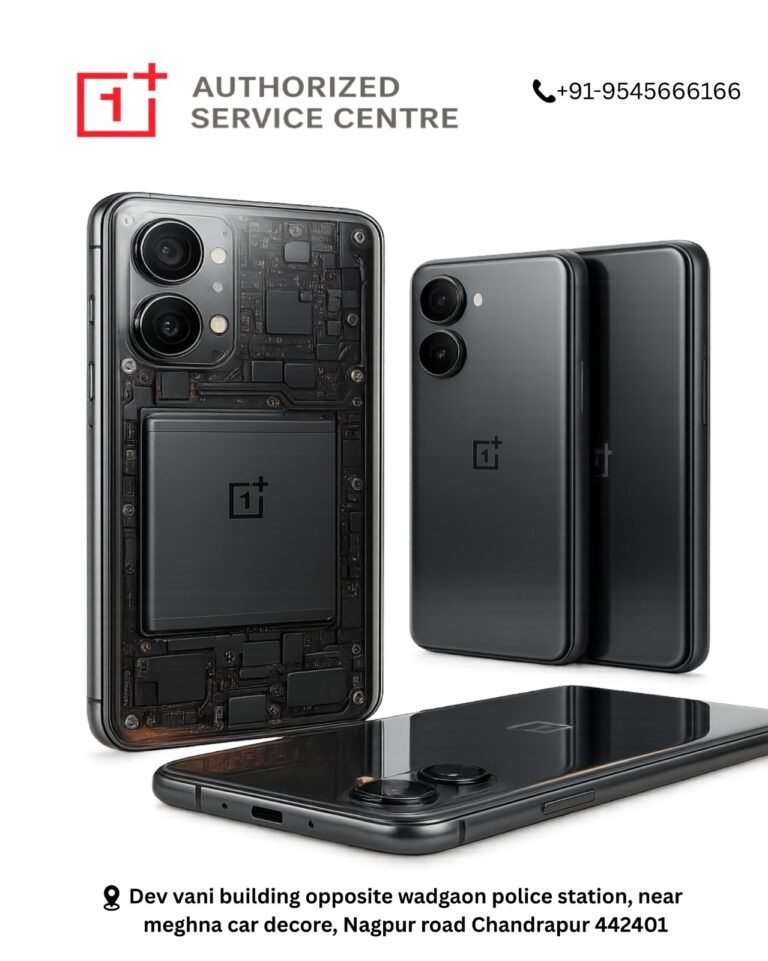 β’ π Address: Devvani Building, Opposite Wadgaon Police Station, Near Meghna Car Decor, Nagpur Road, Chandrapur β 442401 β’ π Contact Number: +91 9545666166 β’ β° Working Hours: 09:30 AM β 07:30 PM (Closed Sunday) β’ π§ Email: info@oneplusservicecentre.in β’ β‘ Services: Screen replacement, battery repair, charging port, software updates, camera & speaker repair, motherboard issues, water damage recovery β’ π Pick-up & Drop: Available across Chandrapur